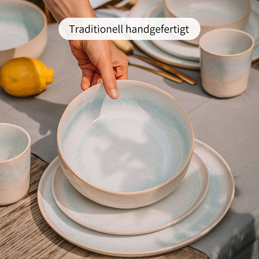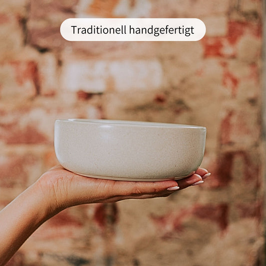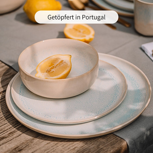 Hochwertiges Keramikgeschirr, wie handgemachte Keramiktassen, handgetöpferte Teller oder Keramikbecher aus Portugal, zeichnet sich durch bestimmte Merkmale aus. Es sollte eine gleichmäßige Glasur, eine saubere Verarbeitung und keine Risse oder Sprünge aufweisen. Die Ränder sollten glatt sein und die Formen sollten einheitlich sein, auch wenn handgemachte Stücke oft kleine Unregelmäßigkeiten aufweisen, die ihren Charme ausmachen. Beim Halten sollte das Geschirr, ob es sich nun um einen Keramikbecher, eine Keramiktasse oder einen Keramikteller handelt, solide und schwer in der Hand liegen. Handgemachte Produkte wie handgemachte Kaffeebecher oder handgetöpferte Tassen zeigen oft das Können und die Erfahrung des Töpfers, so dass jedes Stück ein Kunstwerk ist. Wenn Sie Keramikgeschirr kaufen, sollten Sie auf diese Qualitätsmerkmale achten, um sicherzustellen, dass Sie ein Produkt erhalten, das über viele Jahre hinweg hält.