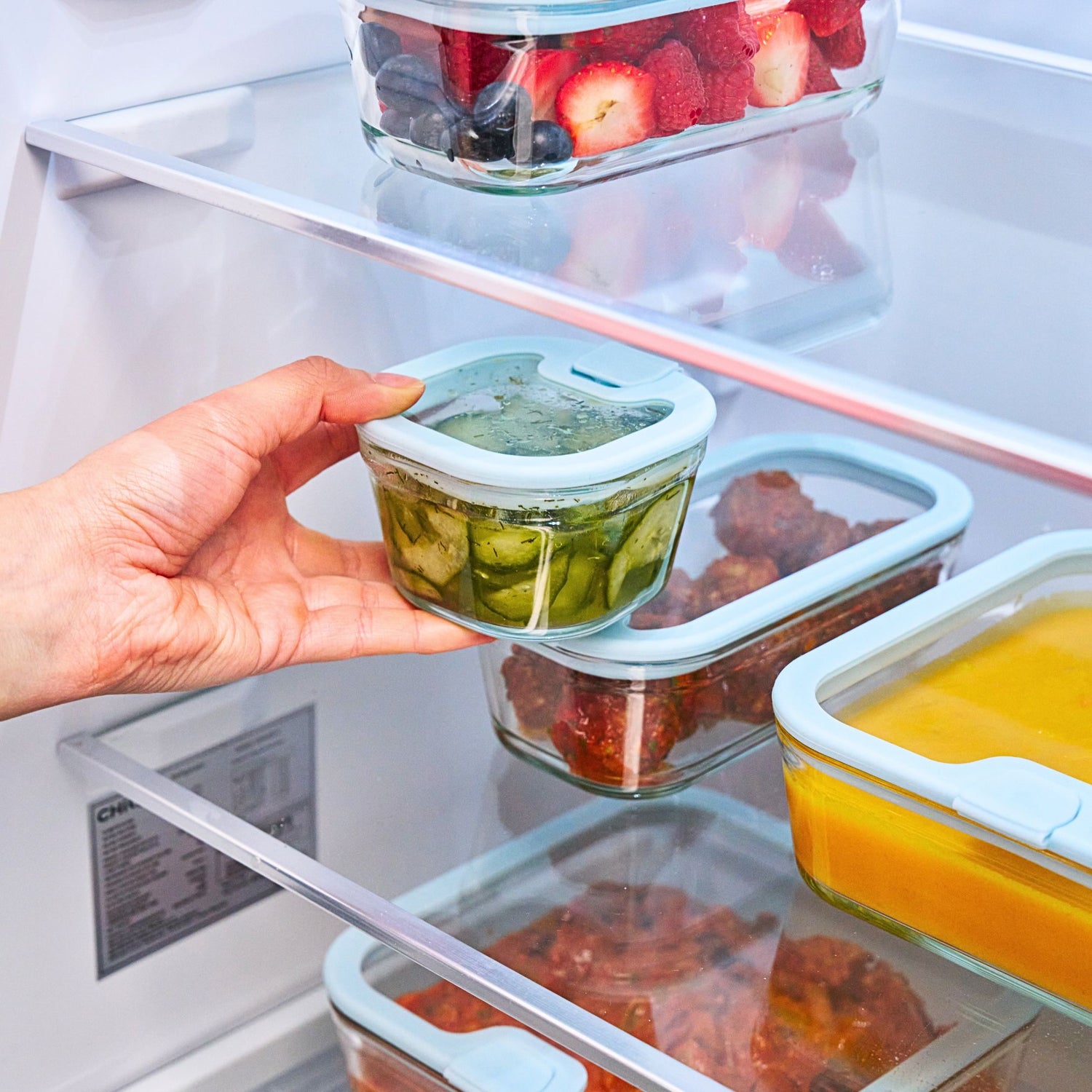 Mit unseren Frischhaltedosen verwandelst Du das Chaos im Kühlschrank in einen echten Blickfang und hältst gleichzeitig Lebensmittel länger frisch!