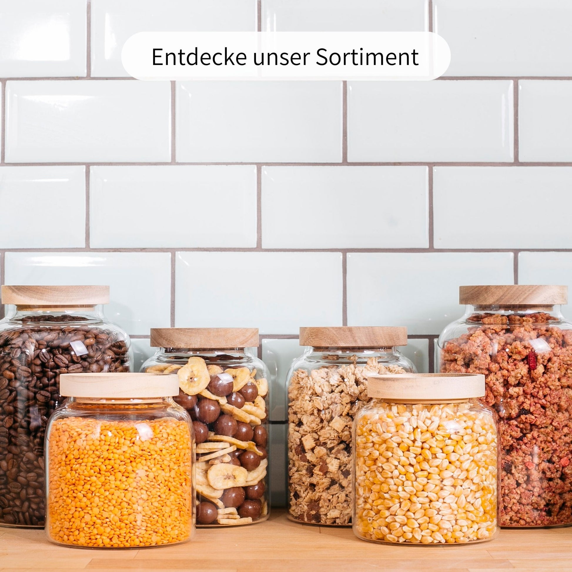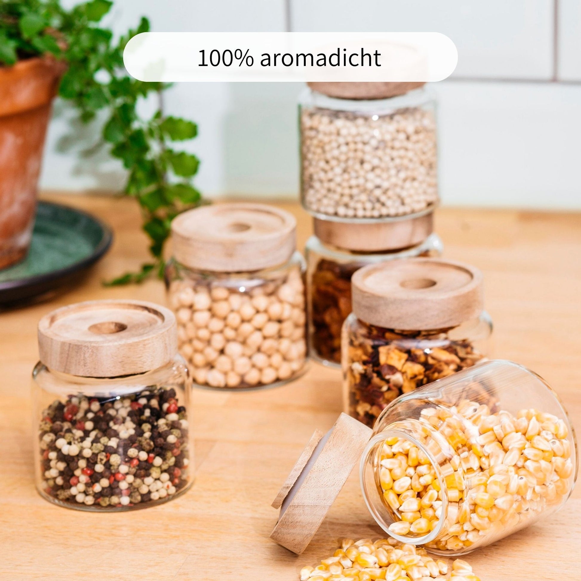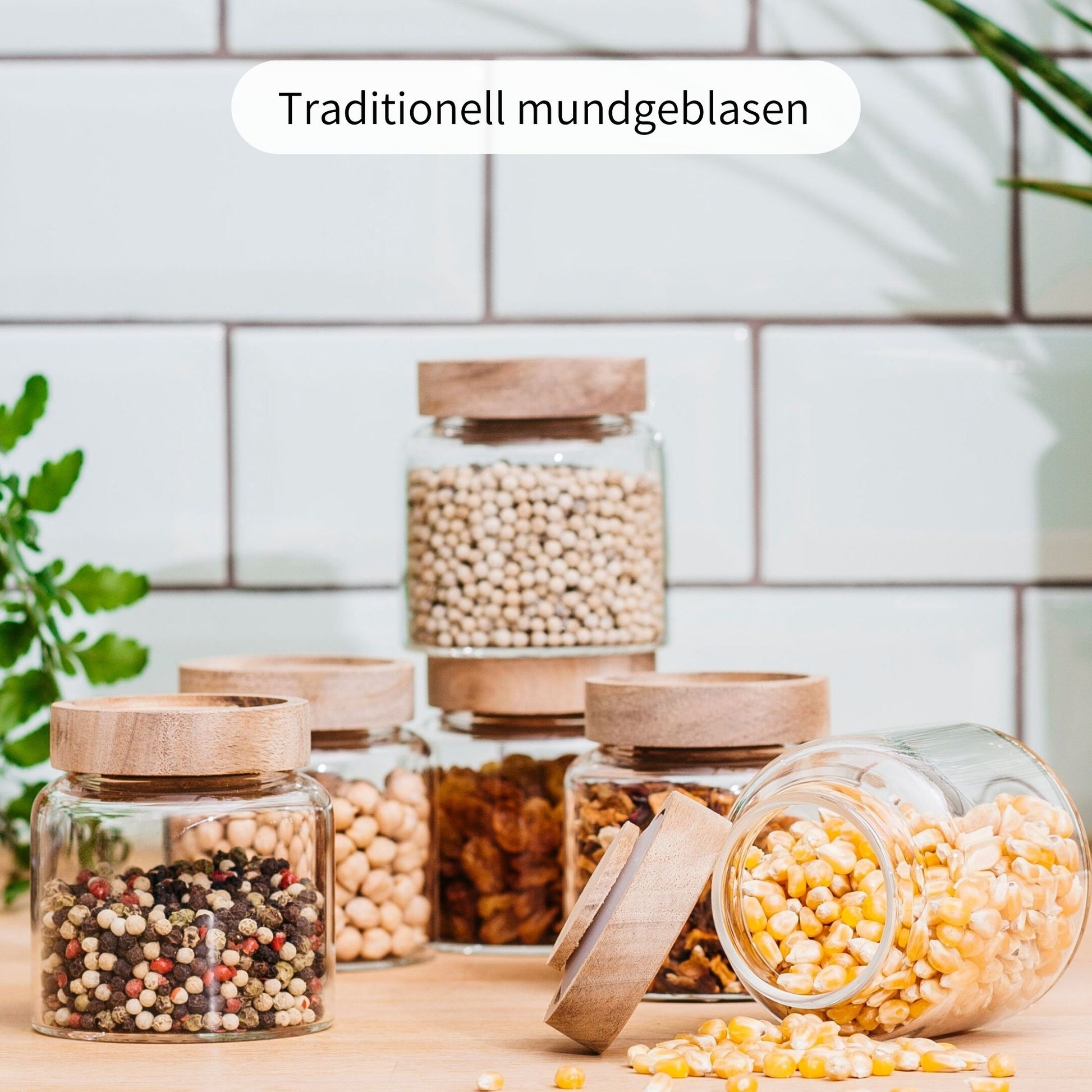 Unsere Vorratsgläser werden traditionell mundgeblasen und bestehen ausschließlich aus recycelbarem Borosilikatglas & naturbelassenem Akazienholz!