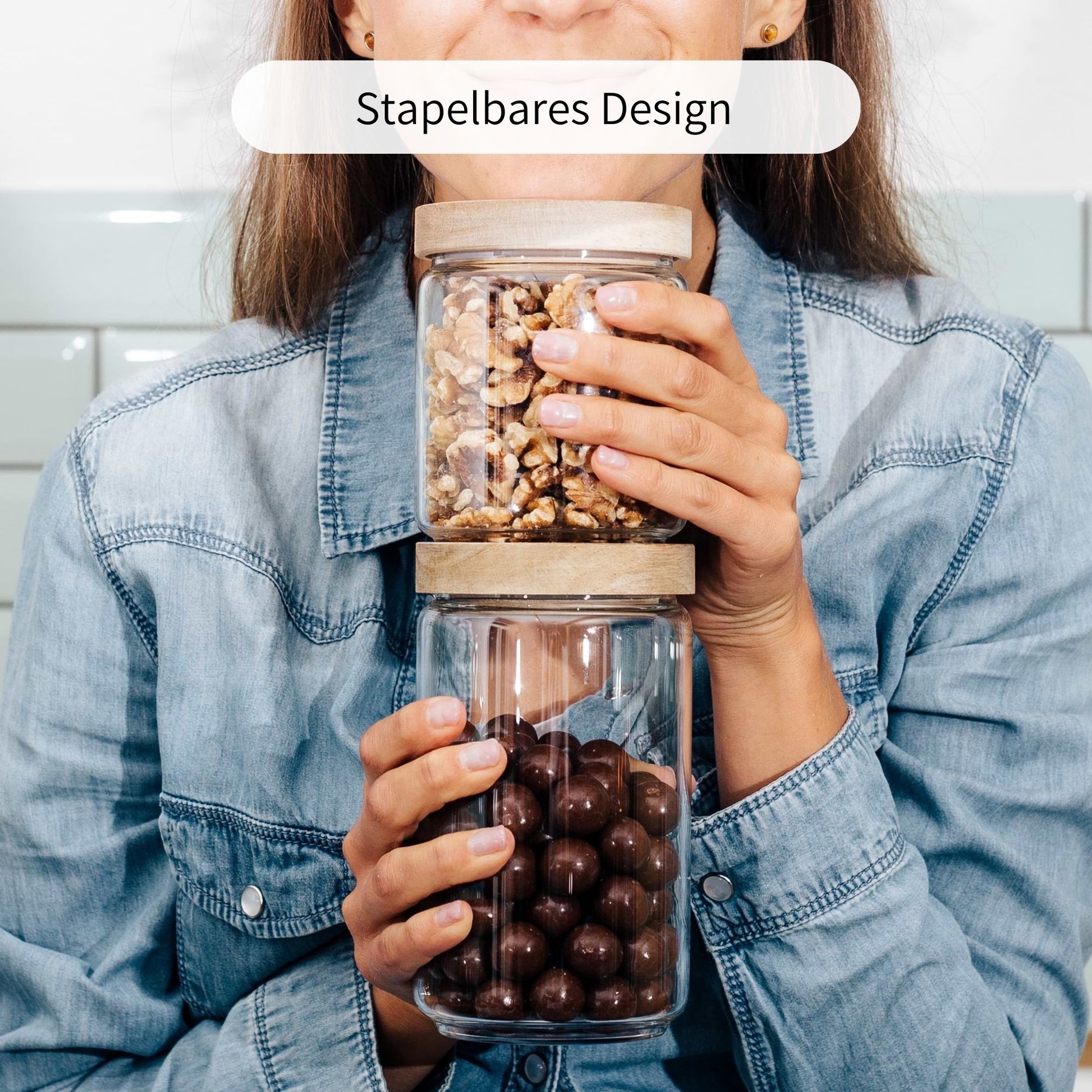 Du hast nicht viel Platz in deiner Küche? Kein Problem, unser gesamtes Aufbewahrungssortiment ist stapelbar. Die Einkerbung im Holzdeckel gibt den Gläsern Stabilität und bewahrt sie vor dem Umfallen. Das ist nicht nur platzsparend, du kannst dadurch auch dein ganz eigenes Ordnungssystem kreieren.