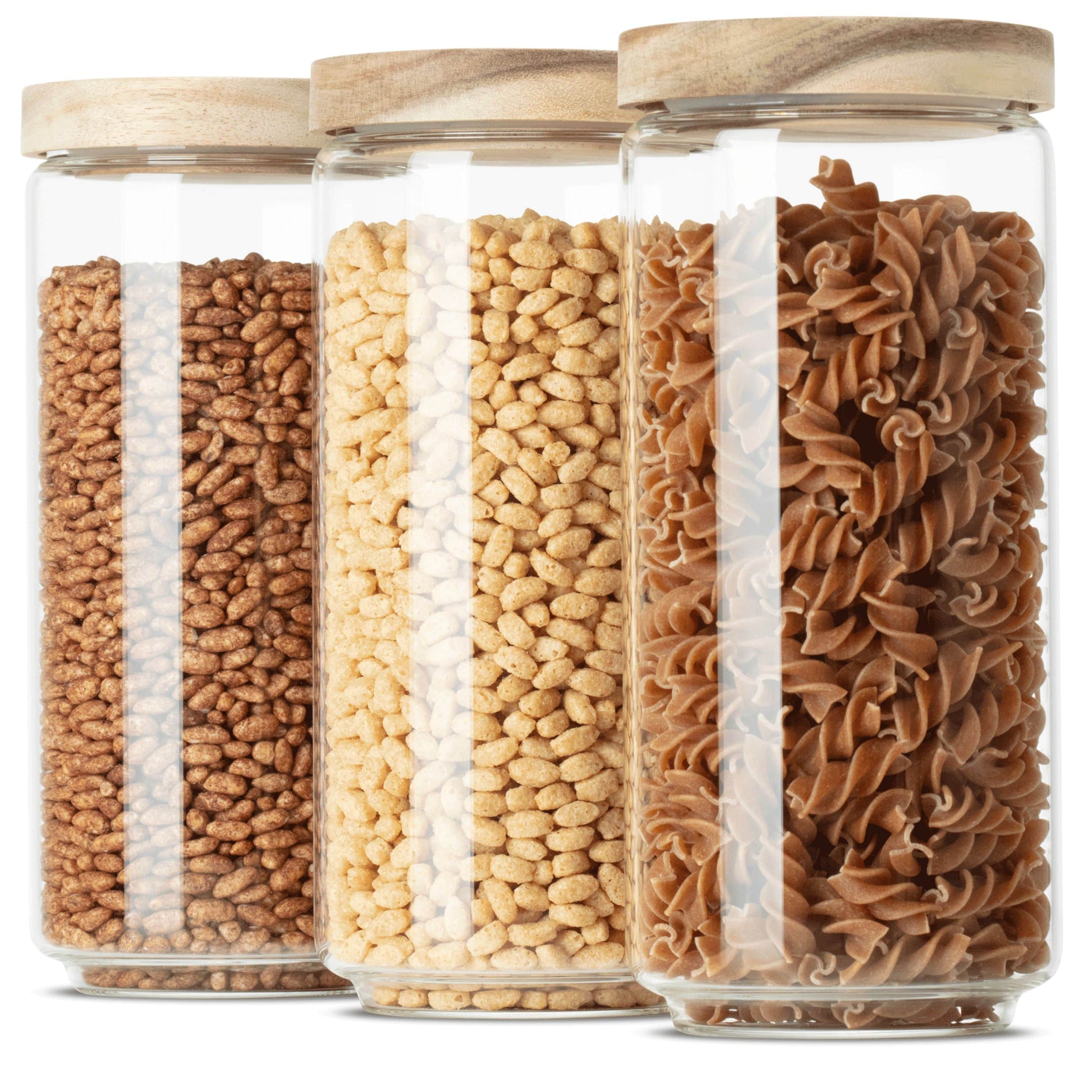 Die großen Vorratsgläser haben eine praktische Höhe von ca. 21cm*. Die breite Öffnung von 7,5cm Durchmesser ermöglicht dir ein einfaches Befüllen und Ausschütten deiner Lebensmittel. Wegen des schmalen Umfangs der Behälter kannst du die Vorratsgläser mit nur einer Hand greifen.